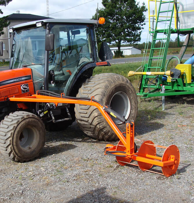 Aide à déplacer le matériel passant sous le tracteur et passe directement dans l'emballeuse.